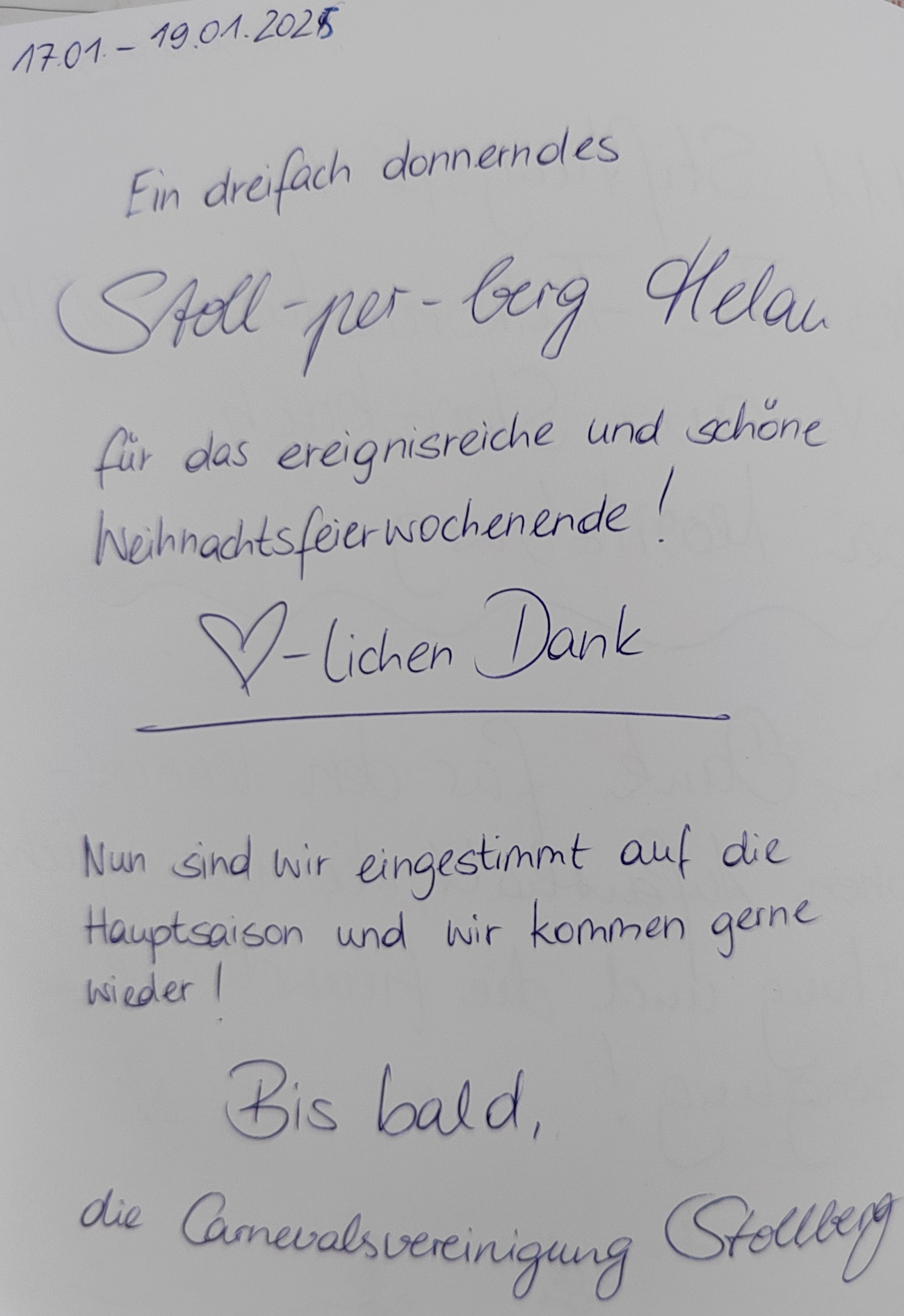 Lieben Dank für den wunderschönen Aufenthalt, die vorzügliche Bewirtung und die freundliche Umsorgung!