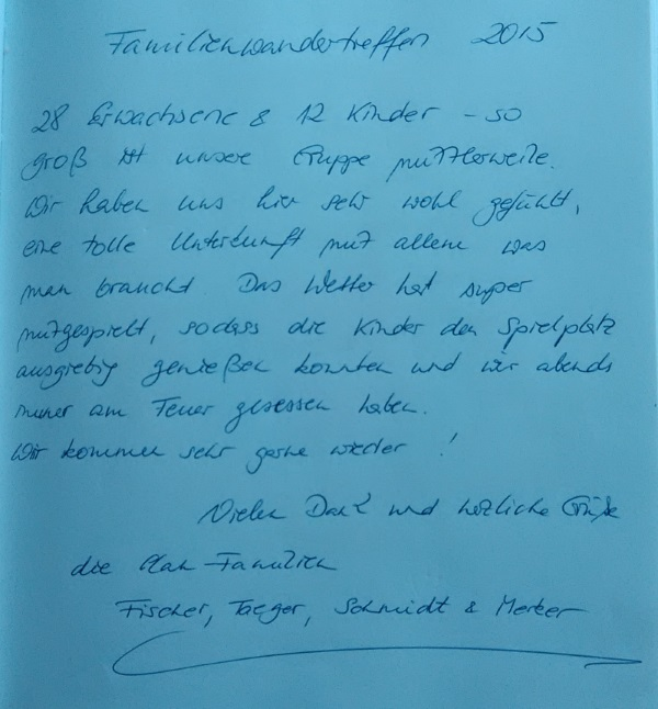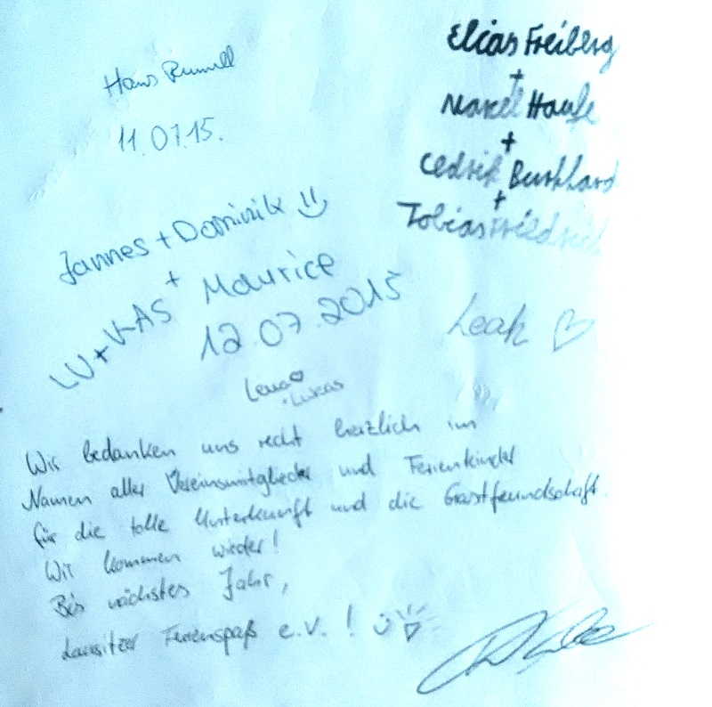 Wir bedanken uns im Namen aller Vereinsmitglieder und Ferienkinder für die tolle Unterkunft und Gastfreundschaft.