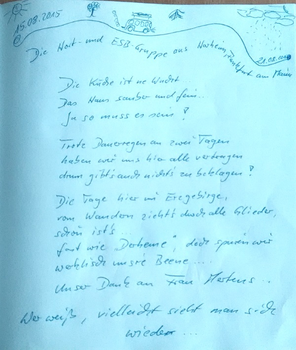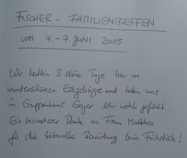 Wir hatten 3 schöne Tage hier im wunderschönen Erzgebirge und haben uns im Gruppenhaus Geyer sehr wohl gefühlt.
