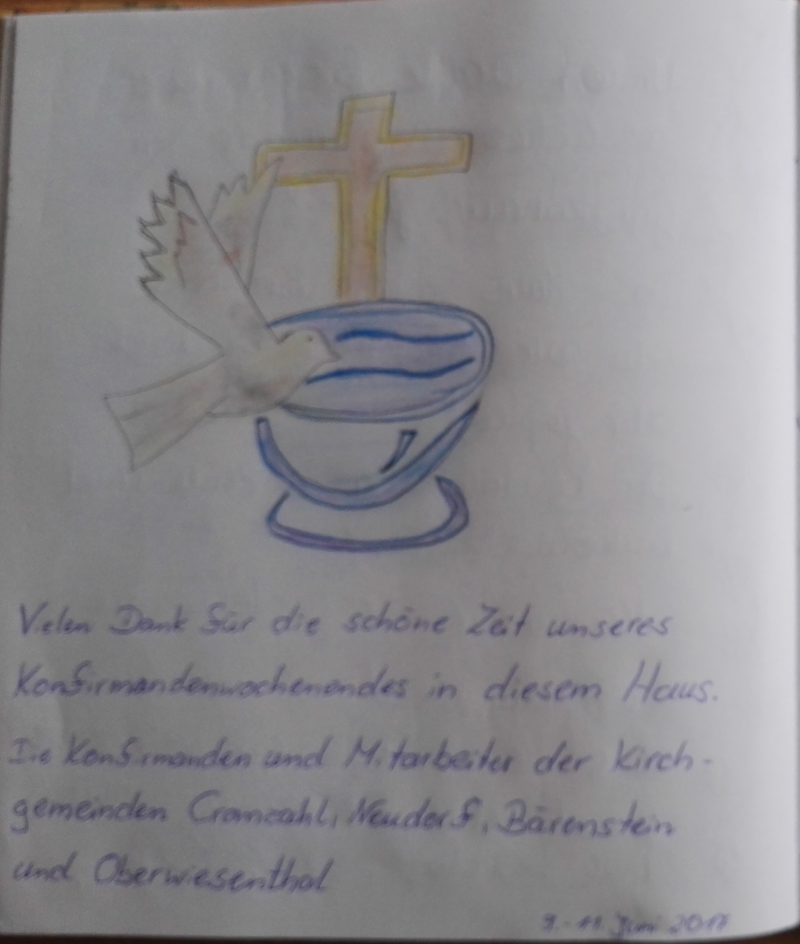 Vielen Dank für die schöne Zeit unseres Konfirmandenwochenendes in diesem Haus. Die Konfirmanden und Mitarbeiter der Kirchgemeinden Cranzahl, Neudorf, Bärenstein und Oberwiesenthal.