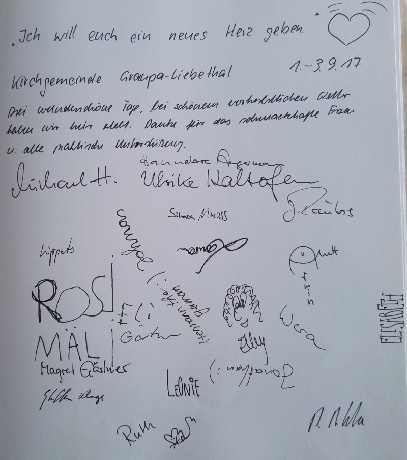 Drei wunderschöne Tage, bei schönem vorherbstlichen Wetter haben wir hier erlebt. Danke für das schmackhafte Essen und alle praktische Unterstützung.