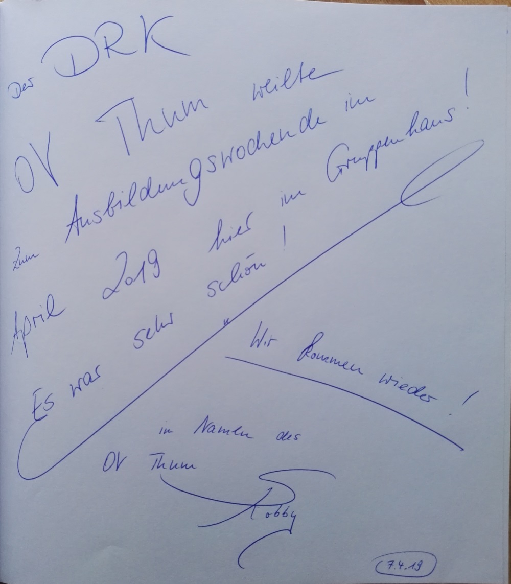 Der DRK OV Thum weilte zum Ausbildungswochenende im April 2019 hier im Gruppenhaus! Es war sehr schön! Wir kommen wieder!