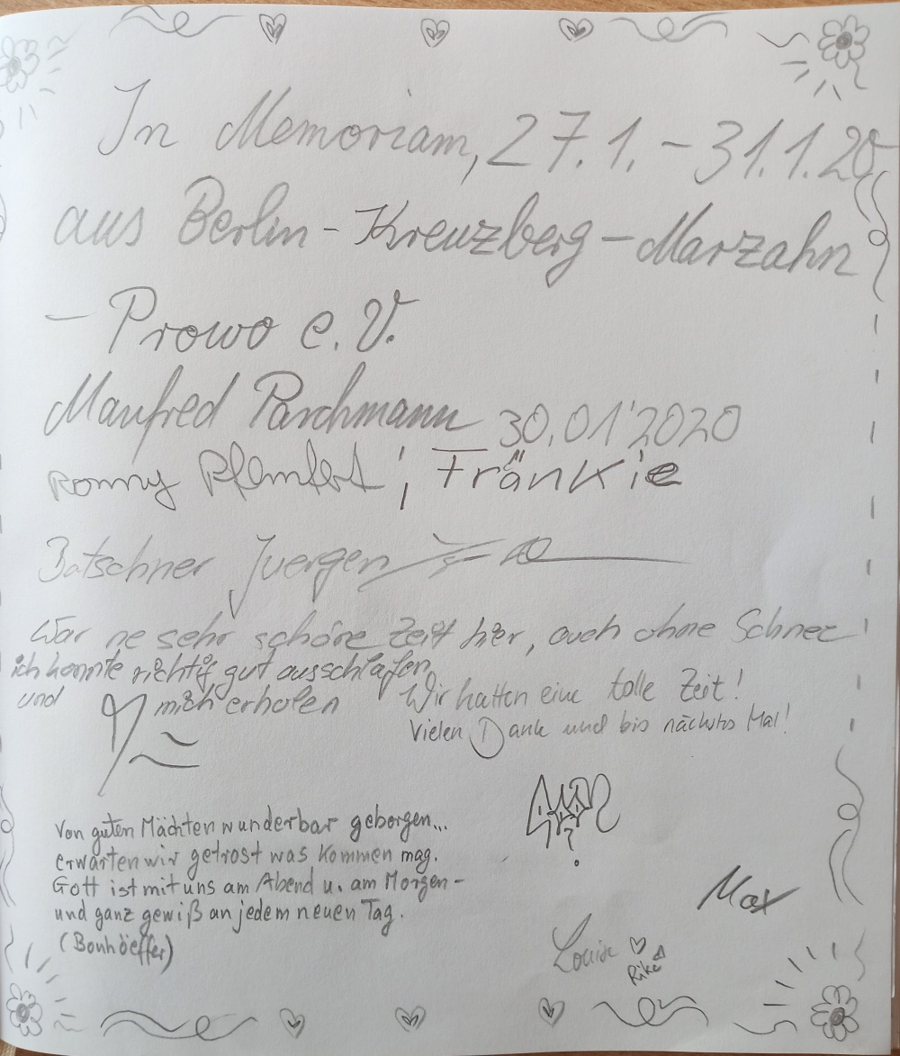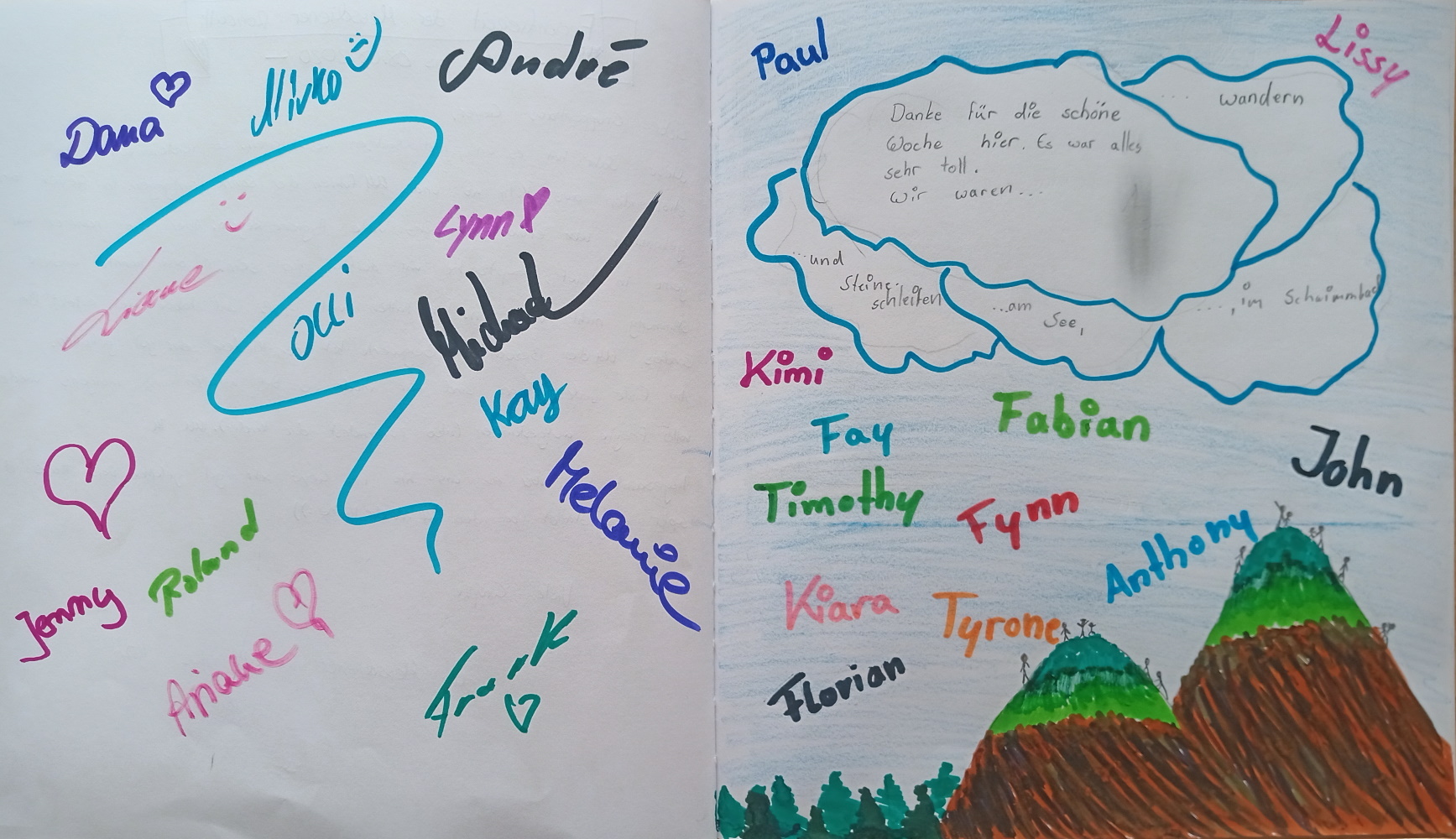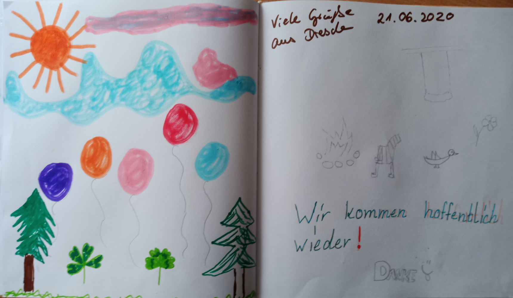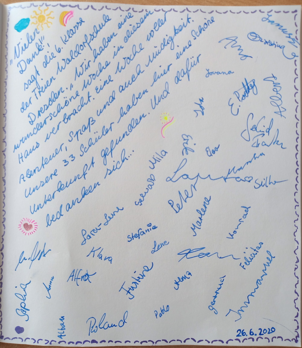 "Vielen Dank!", sagt die 6. Klasse der Freien Waldorfschule Dresden. " Wir haben eine wunderschöne Woche in diesem Haus verbracht. Eine Woche voller Abenteuer, Spaß und auch Müdigkeit. Unsere 33 Schüler haben hier eine schöne Unterkunft gefunden. Und dafür bedanken sich...