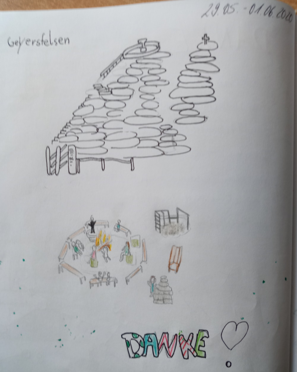 Danke für die schöne Woche hier. Es war alles sehr toll. Wir waren wandern, im Schwimmbad, am See und Steine schleifen.