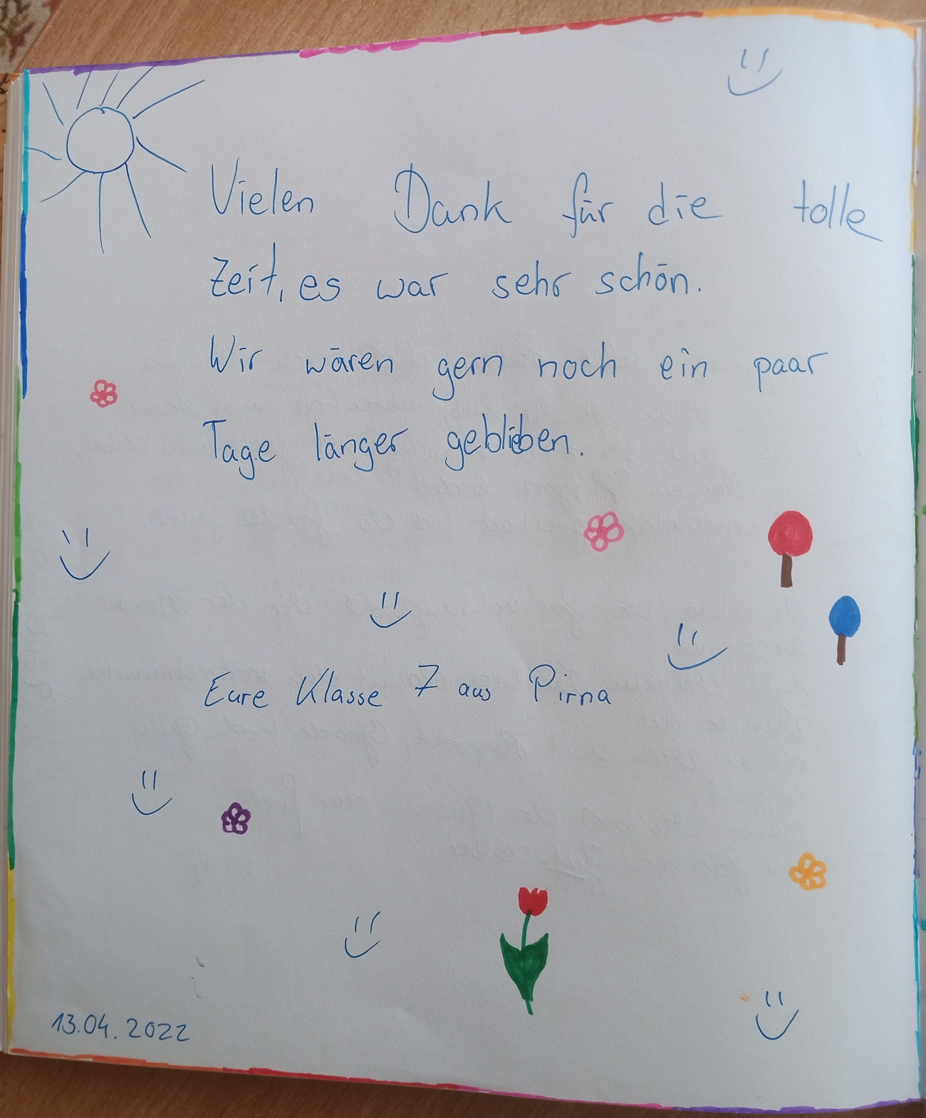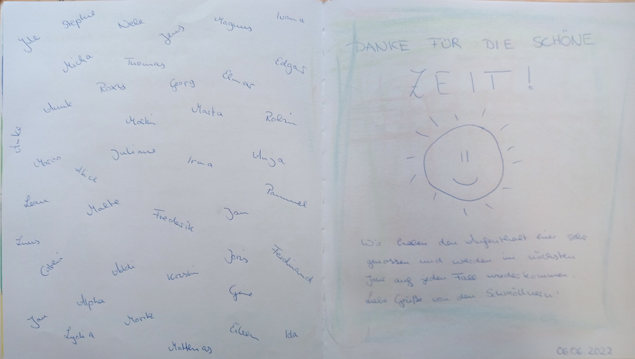Danke für die schöne Zeit! Wir haben den Aufenthalt hier sehr genossen und werden im nächsten Jahr auf jeden Fall wiederkommen.