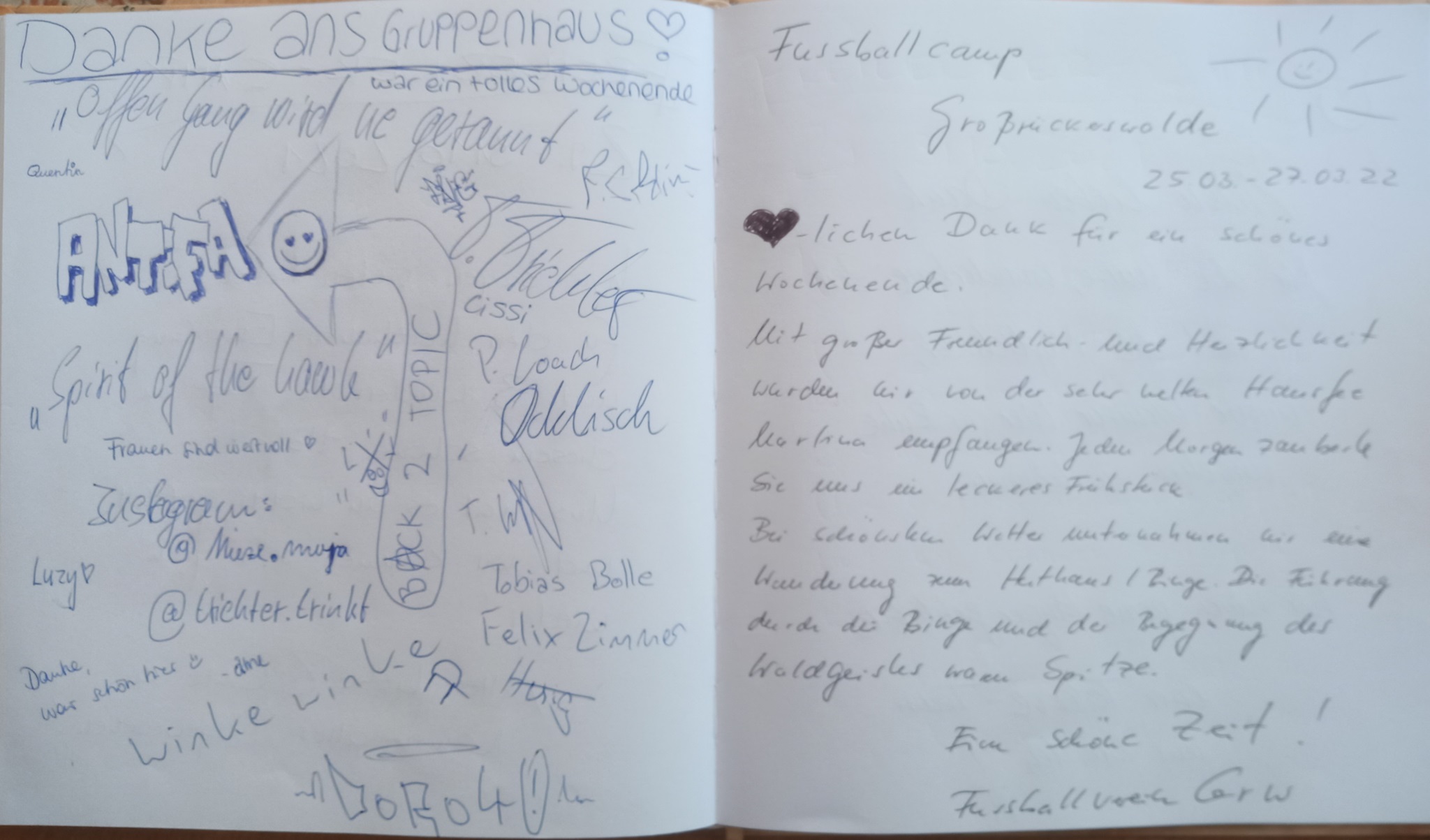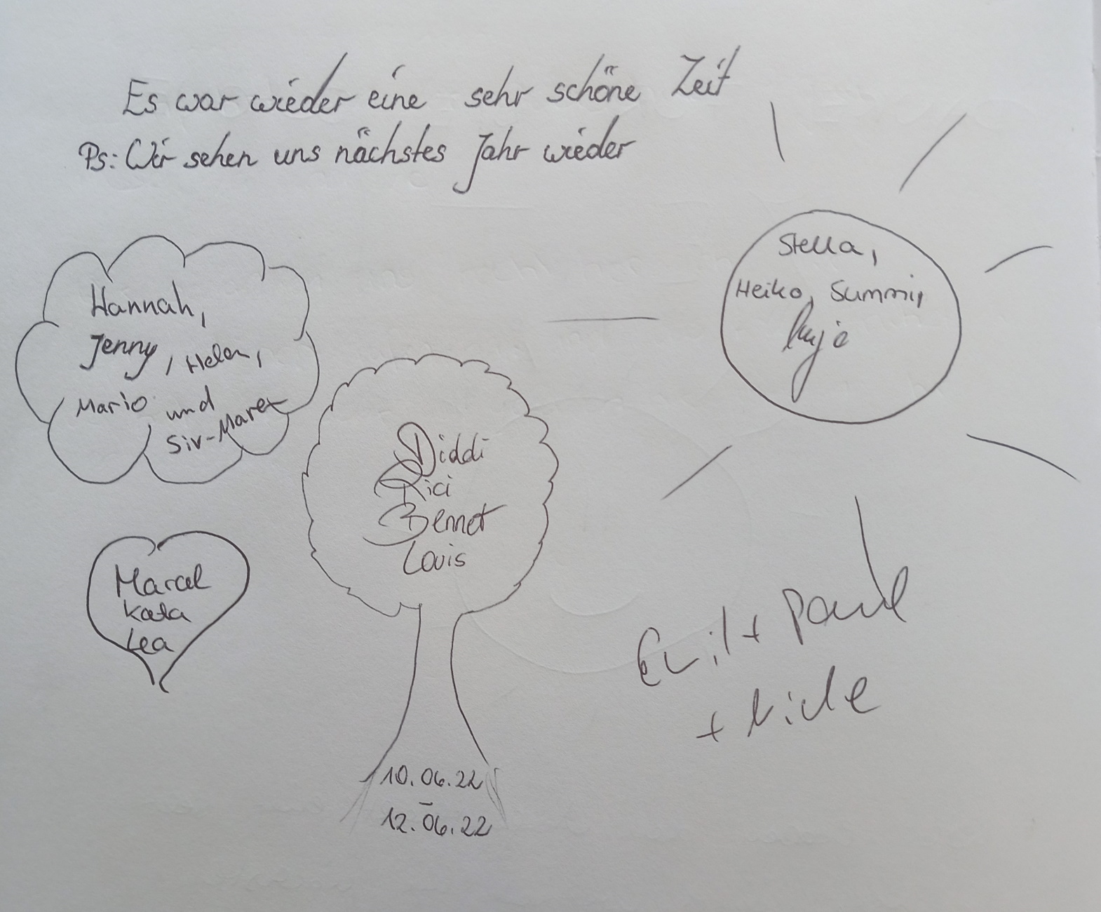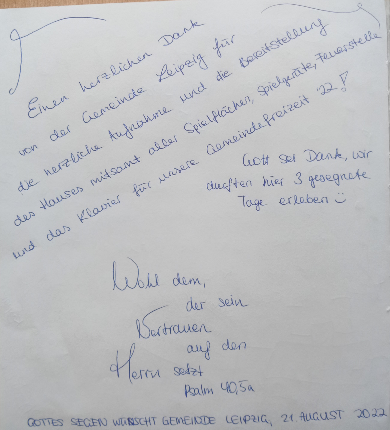 Einen herzlichen Dank von der Gemeinde Leipzig für die herzliche Aufnahme und die Bereitstellung des Hauses mitsamt aller Spielflächen, Spielgeräte, Feuerstelle und das Klavier für unsere Gemeindefreizeit '22!