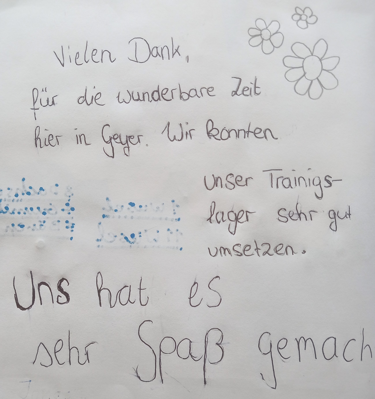 Vielen Dank, für die wunderbare Zeit hier in Geyer. Wir konnten unser Trainingslager sehr gut umsetzen. Uns hat es sehr Spaß gemacht.