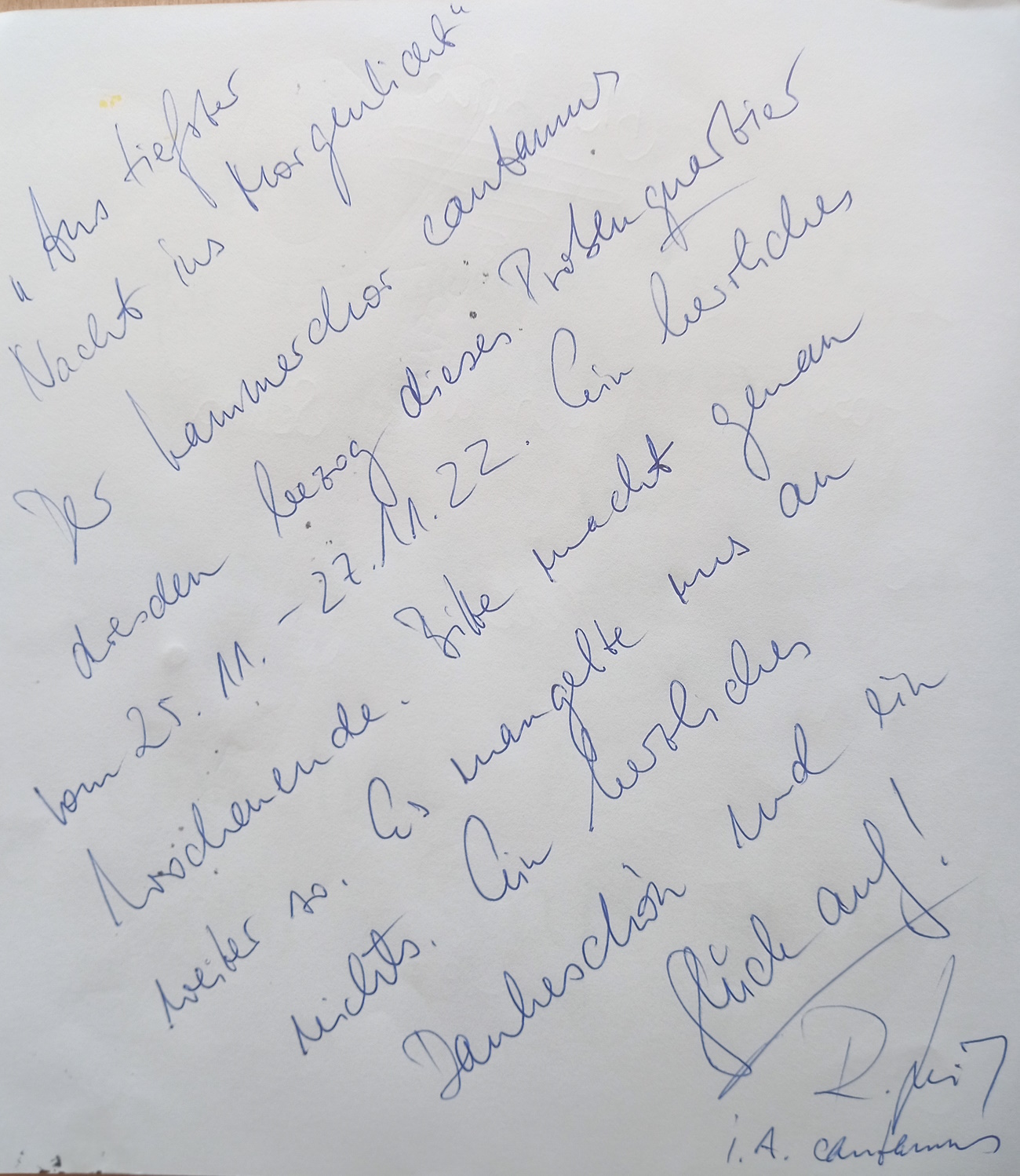 Ein herrliches Wochenende. Bitte macht genau so weiter. Es mangelte uns an nichts. Ein herzliches Dankeschön und ein Glück auf!