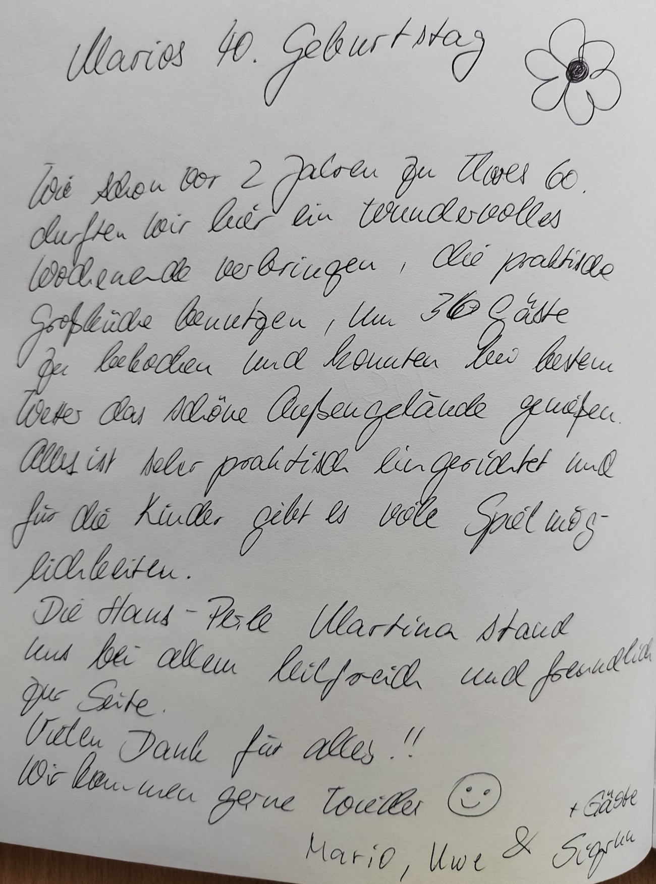 Absolut ideale Bedingungen für so ein Zusammentreffen von sooo... vielen Personen in jedem Alter (11 Monate bis 72 Jahre) Ganz, ganz lieben Dank der guten Seele des Hauses Martina Matthes! Auch einen Dank an die Verantwortliche für Sauberkeit und Ordnung. Es gab nichts zu beanstanden!