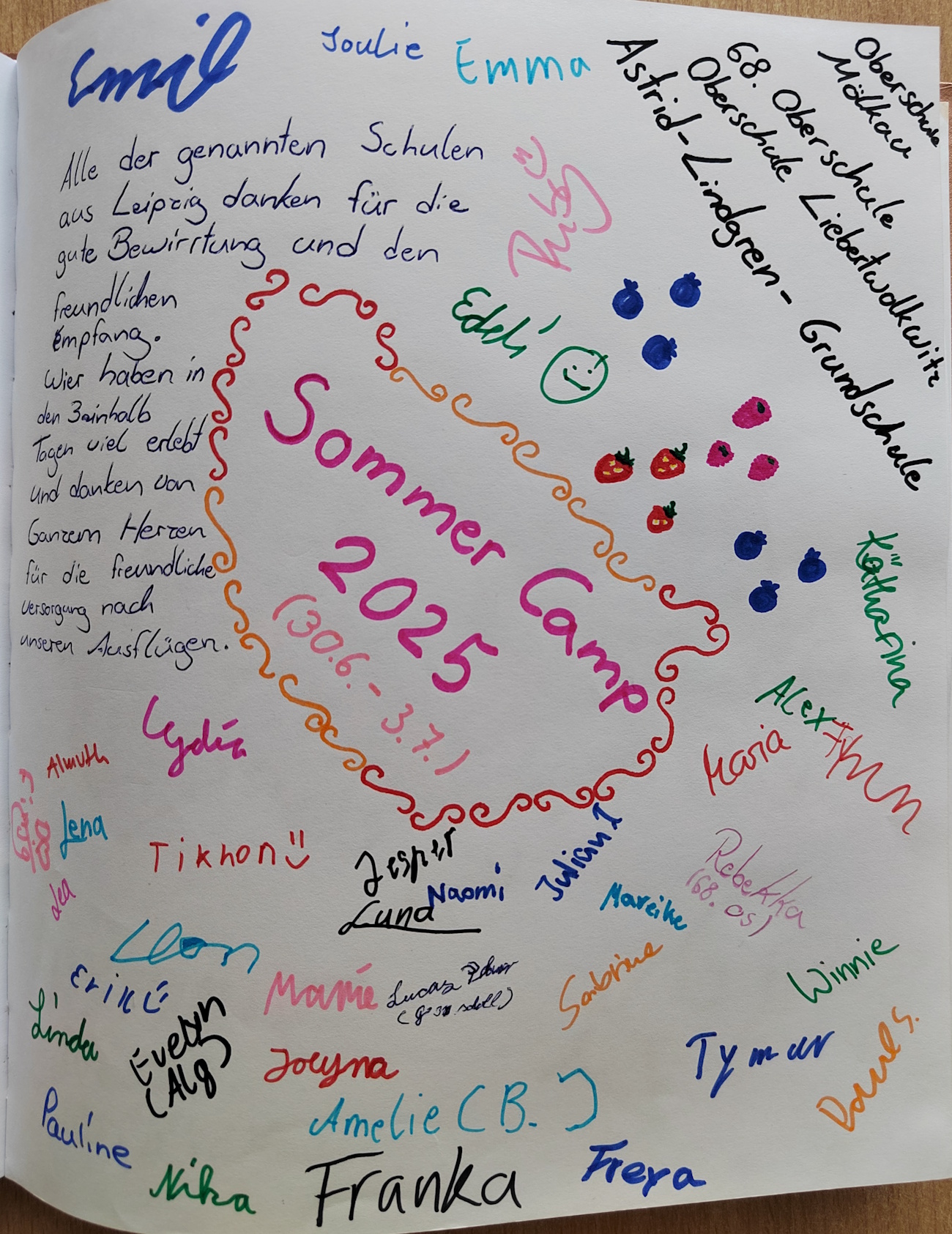 Alle der genannten Schulen aus Leipzig danken für die gute Bewirtung und den freundlichen Empfang. Wir haben in den 3einhalb Tagen viel erlebt und danken von ganzem Herzen für die freundliche Versorgung nach unseren Ausflügen.