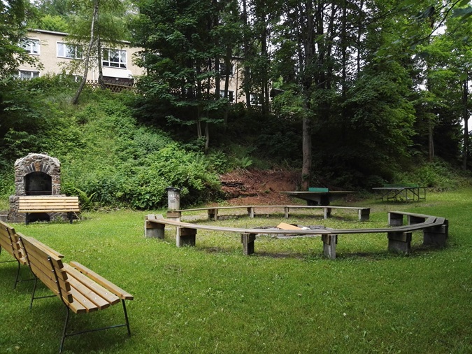 Damit der Abend ruhig ausklingen kann, steht noch eine große Lagerfeuerstelle umringt mit Sitzbänken zur Verfügung.