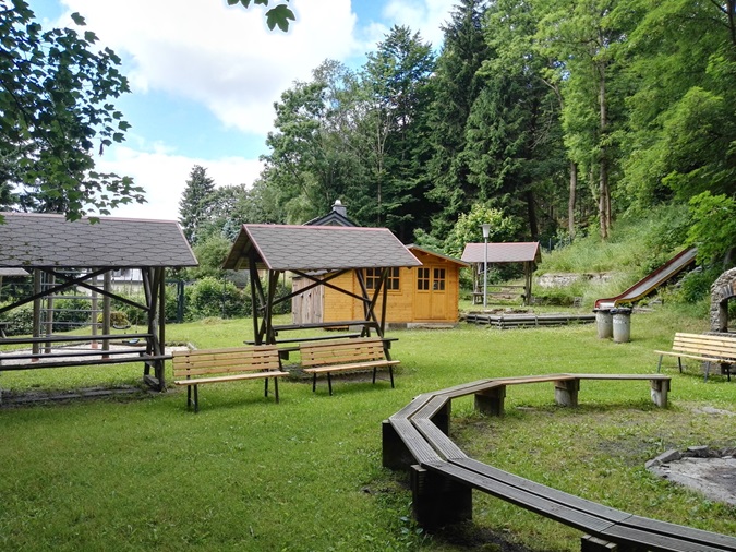 Der Außenbereich des Gruppenhauses Geyer bietet viele Möglichkeiten der Freizeitgestaltung. Für die Kleinen gibt es einen Spielplatz mit Schaukel, Riesenrutsche und Klettergerüst. Wer sich ein wenig sportlich betätigen möchte, dem stehen Volleyball- und Basketballfeld sowie Tischtennisplatten zur Verfügung.