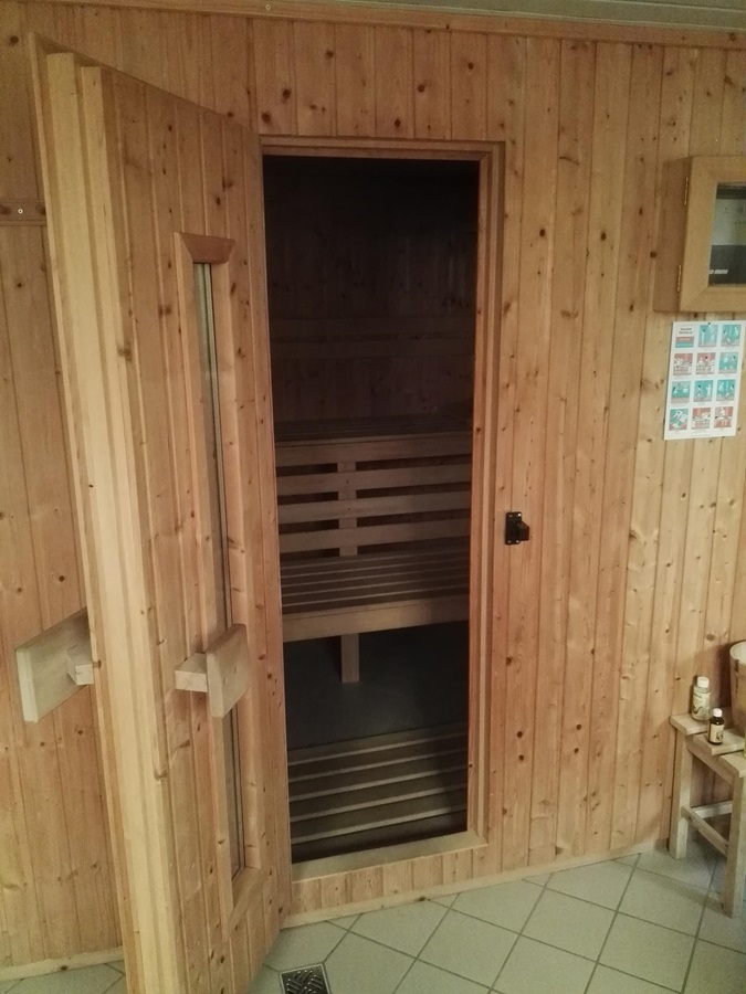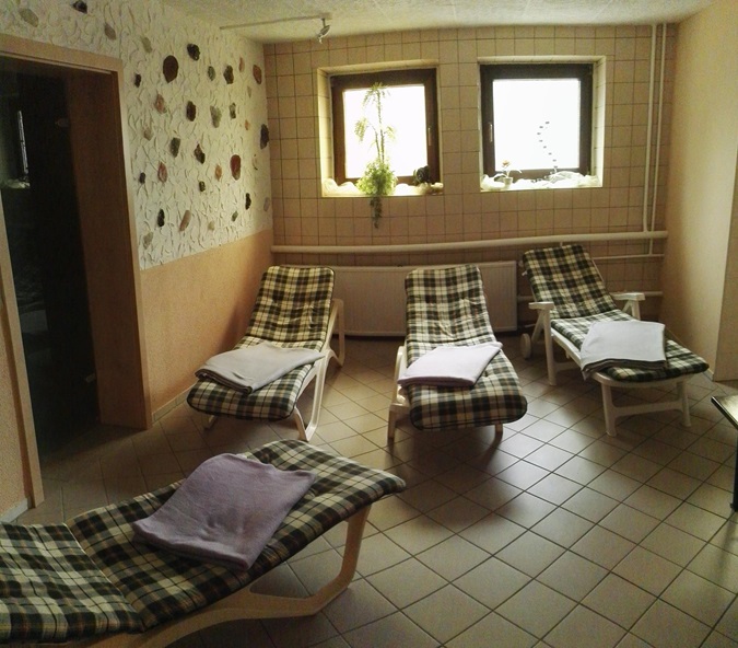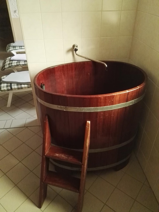 Für unsere Gäste steht im Keller eine Saunakabine mit Ausmaßen 2 x 2 m, ein Sauna-Wasserfass und 4 Entspannungsliegen in einem extra Raum bereit.